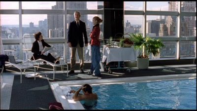 In Almereyda‘s film, Act 3, Scene 4 takes place in a hotel room/apartment in New York. While Polonius hides behind a tapestry in the play, he instead conceals himself behind a mirror in the film. When Hamlet enters, he initially seems somewhat calm but progressively gets more aggressive. He becomes violent with his mother, and this is reflected by the dark and eerie music playing in the background. In the play, the scene is written as follows: