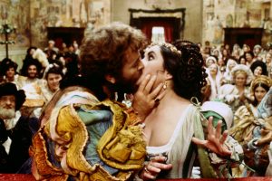 Franco Zeffirelli’s The Taming of the Shrew has been one of my favourite Shakespearean film adaptations since my youth. Be it Elizabeth Taylor and Richard Burton’s comedic and palpable portrayal of Katharina and Petruchio, the opulent costumes and set pieces, or deliverance of the very dialogue that pulled me in, I still find myself delighted with each screening. In watching again for the first time in many years, I was quite taken with a variety of significant details in the film’s production. There are, of course, typicalities featured in many films, such as the use of pathetic fallacy to reflect the mood, the emotionally driven film score to accompany each scene, and a vibrant show of colour and lighting to uncover many character qualities – though I was intrigued more by the dissimilar aspects of the film.